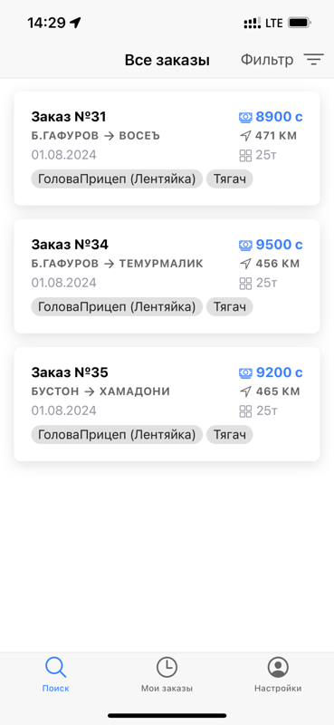 Haydovchilar yuklari haqida ma’lumotlarni, jumladan vazni, hajmi va turini ko‘rib chiqishlari, yuklash va tushirish haqida xabarnomalar olishlari mumkin.